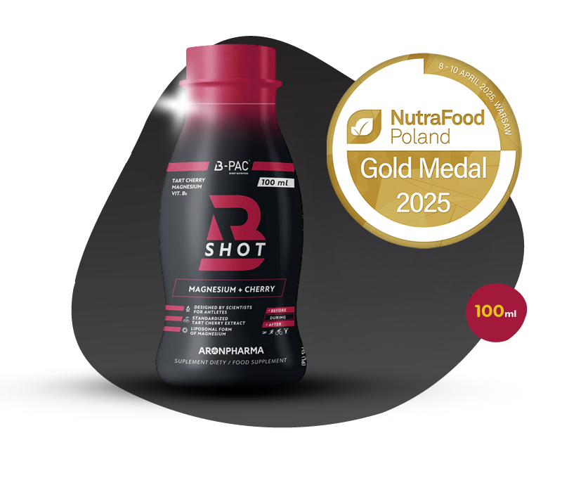 B-PAC® Shot is a dietary supplement in the form of a shot, which is part of the innovative line of supplements for athletes and physically active people from the B-PAC® line. It combines tart cherry fruit extract with vitamin B6 and liposomal magnesium.