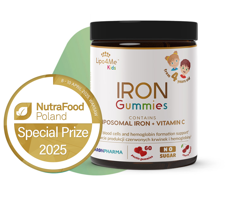 Lipo4Me® KIDS Iron Gummies is a food supplement in the form of pectin gummies containing liposomal iron and vitamin C. It is suitable for children from 4 years of age and adults. The supplement is designed for the youngest to support proper production of red blood cells (1).