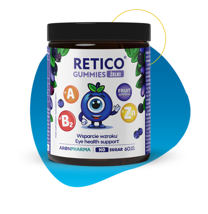 A tasty and convenient way to support eye health. Retico® Gummies is a dietary supplement for children aged 3 and up, as well as adults, in the form of sugar-free pectin gummies, with ingredients that support eye health
