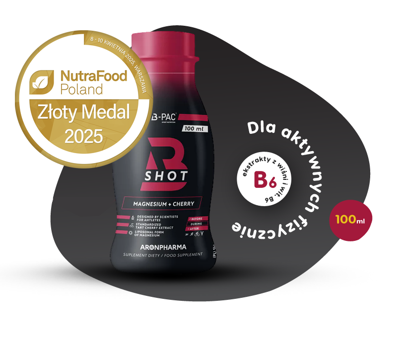B-PAC® Shot to suplement diety w formie shota, który wchodzi w skład innowacyjnej linii suplementów dla sportowców i osób aktywnych fizycznie B-PAC®. Łączy w sobie ekstrakt z owoców cierpkiej wiśni z witaminą B6 i liposomalnym magnezem, by dostarczyć Ci stałą porcję składników wspomagających regenerację po wysiłku fizycznym.